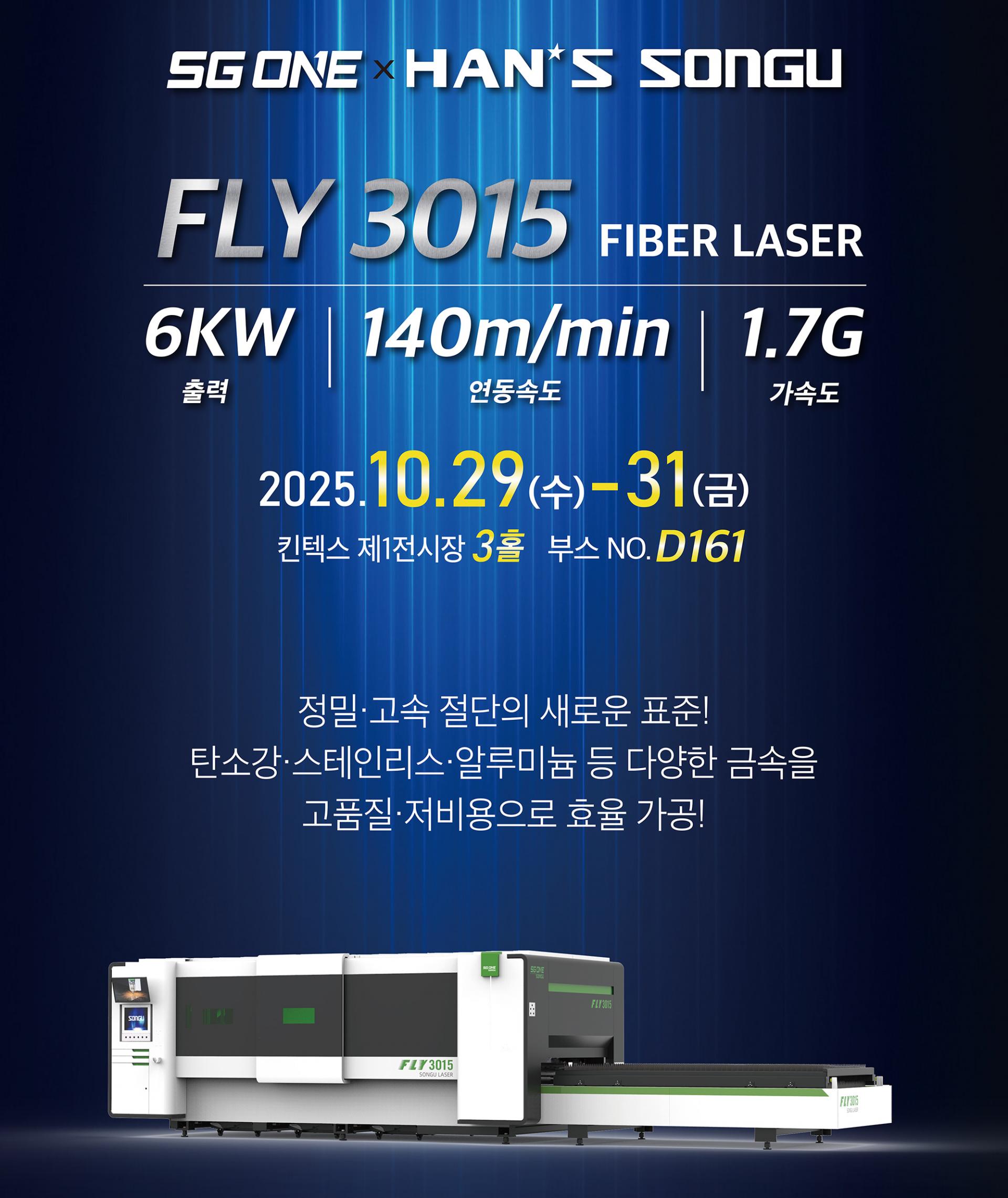 전시 할 장비인 FLY 3015 (6kW) 파이버 레이저 절단기와